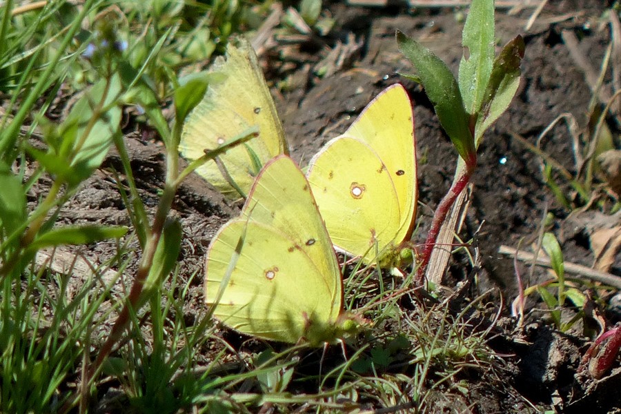 Common Sulphur Butterflies at pond’s edge