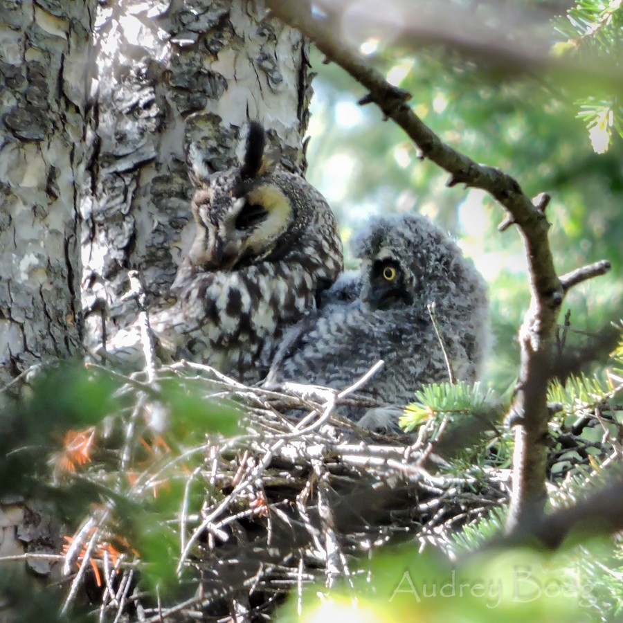 Long-eared Owl and Owlet